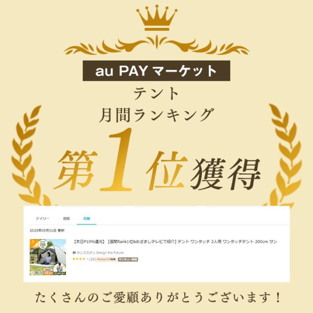 ※荒天時にはペグで地面に固定してもテントが破損する場合がございます。風・雨などの自然現象による破損につきましては保証できかねますので予めご了承ください。