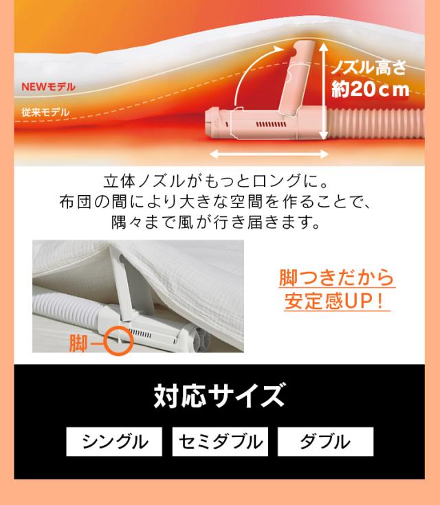 ロング立体ノズルが隅々まで暖めるのでダブルサイズも足元まであったか。