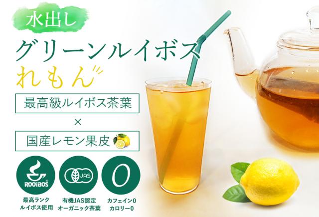 希少なオーガニックの最高級グリーンルイボス茶葉×国産レモン果皮のブレンド。最新の設備で水出しでの抽出にも対応。 後味に柑橘のさっぱりとした香りでゴクゴク飲めます。