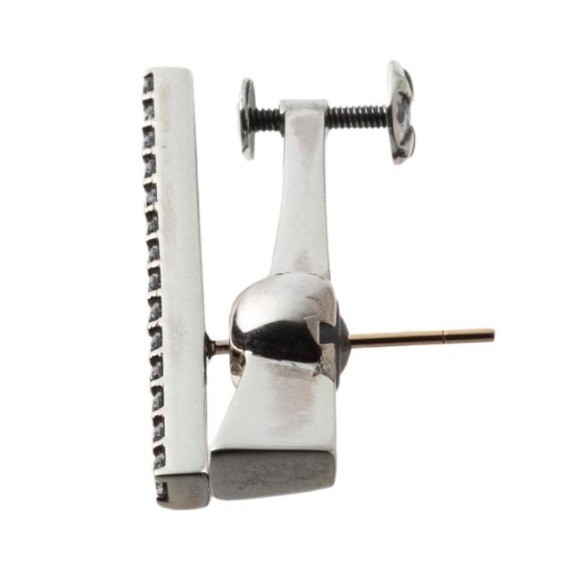 ピアスホールに通してから、耳をネジで挟んで固定する装着のギミックもポイントです。