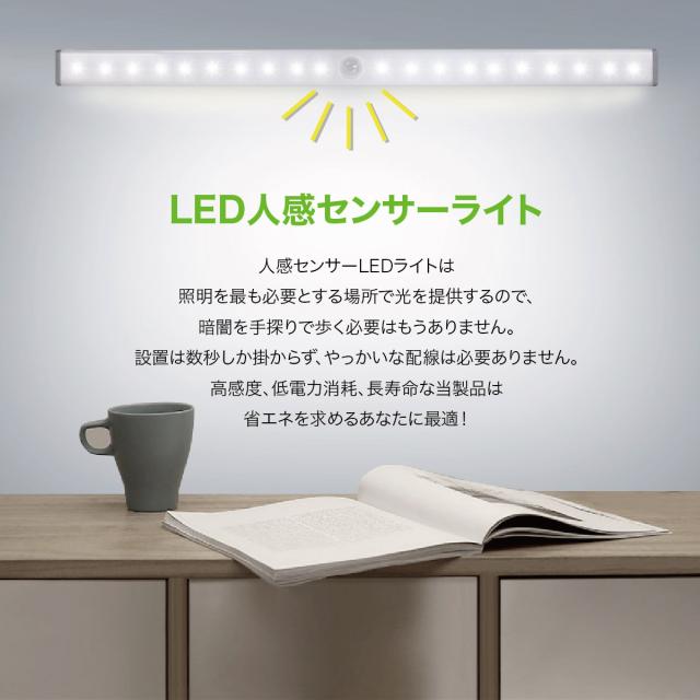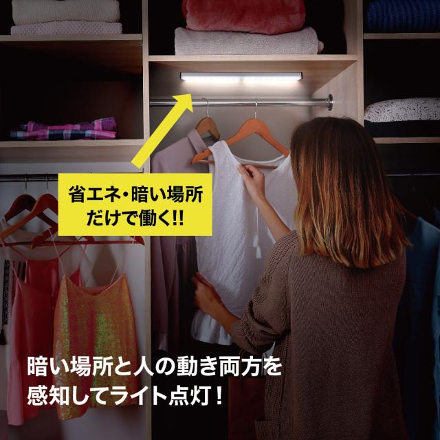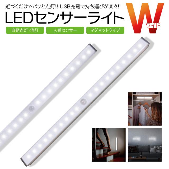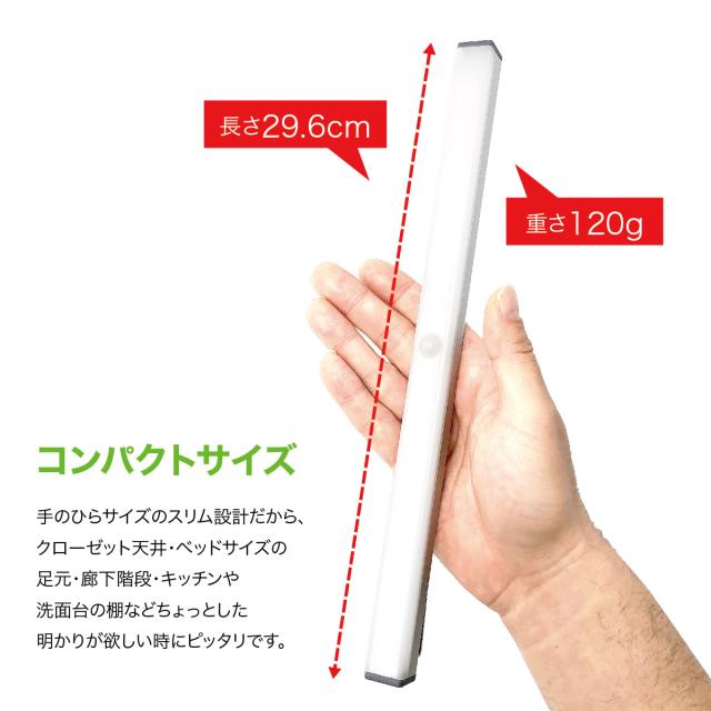 LEDライト 感知式 照明 人感 センサーライト ワイド 29.6cm ledセンサーライト 人感センサー ライト 防災グッズ 屋外 室内 小型 玄関 クローゼット 廊下 senser-02