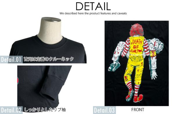 [メール便送料無料]パロディ Tシャツ おもしろ 長袖 Death Of Junk Food メンズ レディース ユニセックス デザインTシャツ おしゃれTシャツ ネタTシャツ 個性的 長袖 トップス 夏 おみやげ プレゼント コットン100% M-XXL 白 黒 グレー 大きいサイズ トップス カットソー