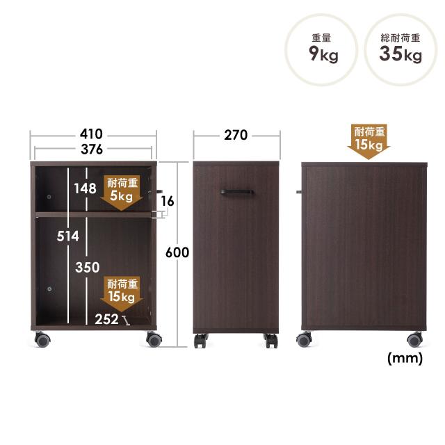 デスクワゴン デスク下収納 高さ60cm 幅41cm 奥行27cm キャスターつき 収納ラック サイドワゴン 木目調 ブラウン[100-WG012M]