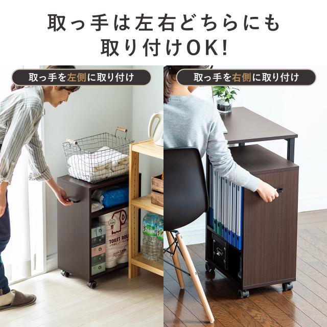 ⇒ご購入の前にご確認下さいA4ファイルや小物を収納して、デスク下に入れられるサイドワゴン。移動させやすい取っ手とキャスター付き。【WEB限定商品】