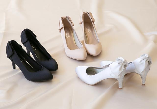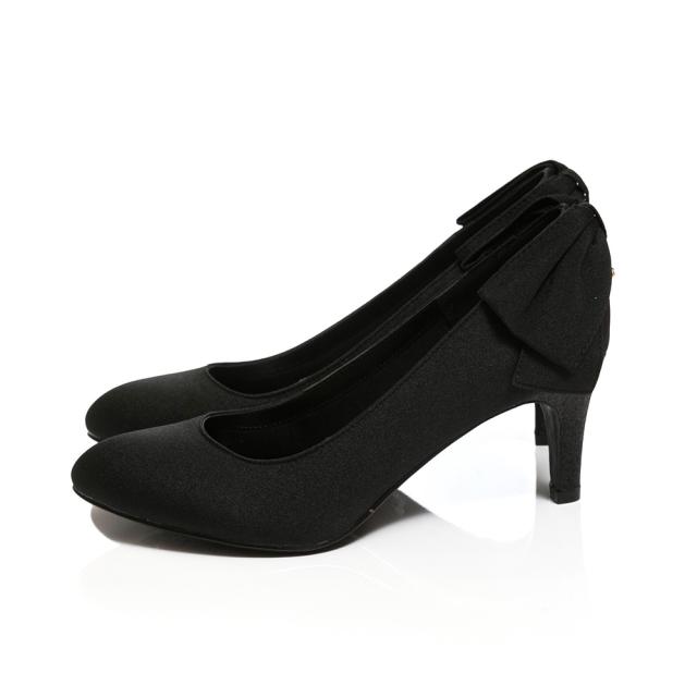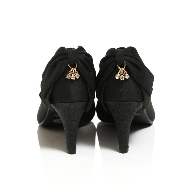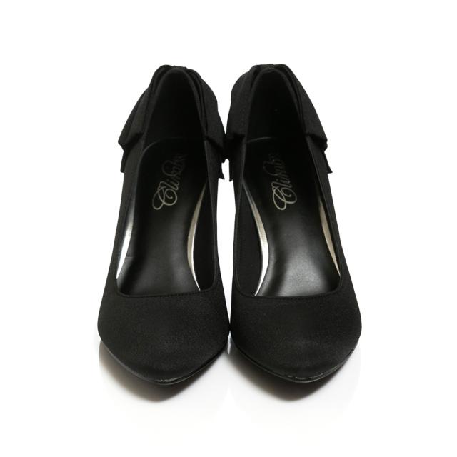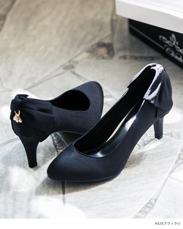 パンプス レディース 痛くない 黒 ブラック ピンヒール リボン 7cmヒール グリッター加工 結婚式 卒業式 入学式 送料無料