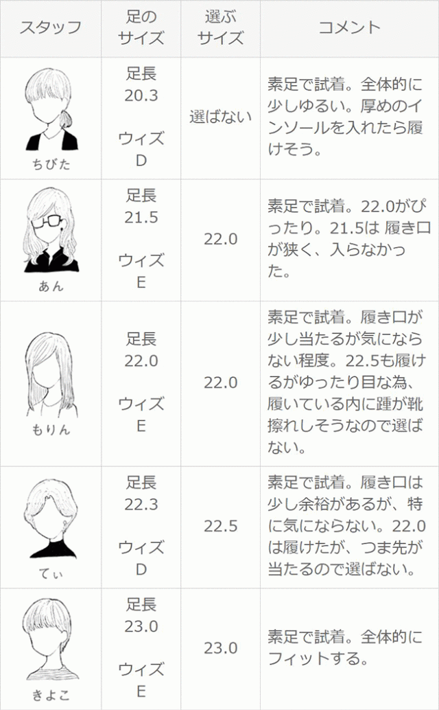 ※足の形には個人差があります。スタッフ試着感想は参考程度にお考え下さい。