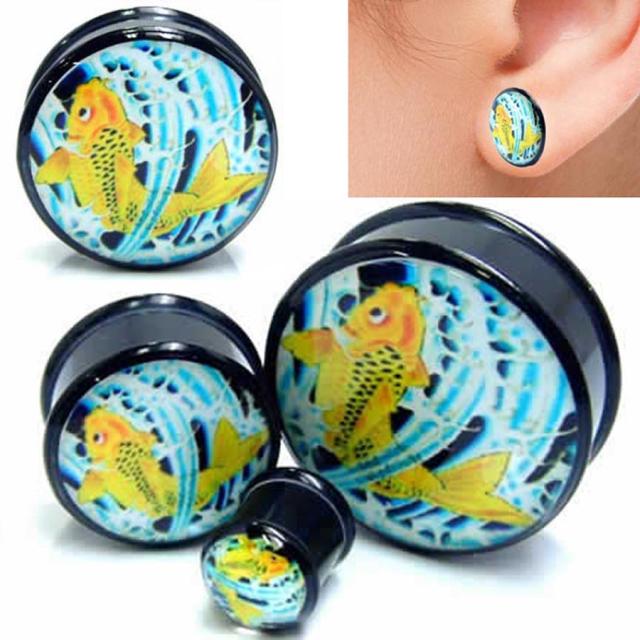 [アクリル プラグ ボディピアス ] グラフィック鯉幟プラグ 1個販売 ボディピアス 金属アレルギー対応 メンズ レディース ダブルフレア プラスティック プラスチック 樹脂 黒色 ブラック 鯉の滝登り サカナ 魚 フィッシュ 竜 龍 ドラゴン 鯉のぼり 昇竜 人気 かっこいい 刺青