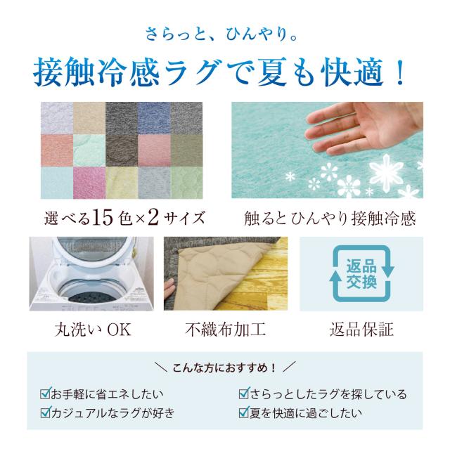 ラグ カーペット 190×240 3畳 長方形 接触冷感 涼感 ひんやり キルティング 洗える 清潔 春夏用 「グラシエラグ」