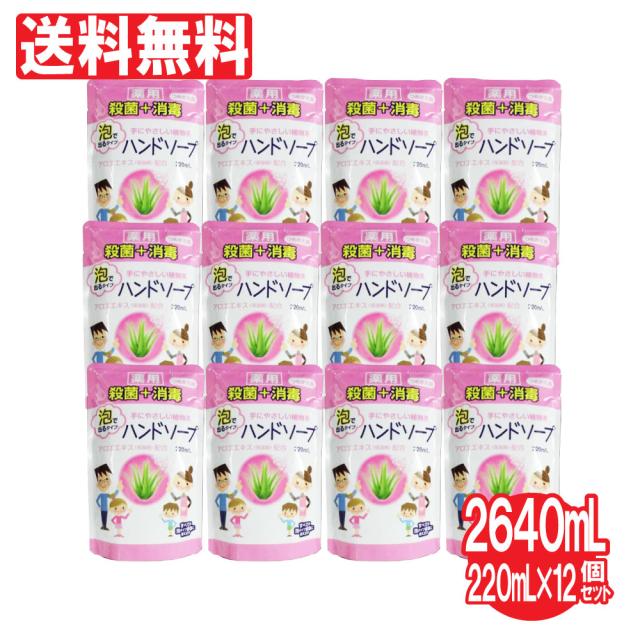 ハンドソープ 泡 薬用 詰め替え 洗浄 殺菌 消毒 保湿 アロエエキス 大容量 220mL 12個セット 日本製 送料無料