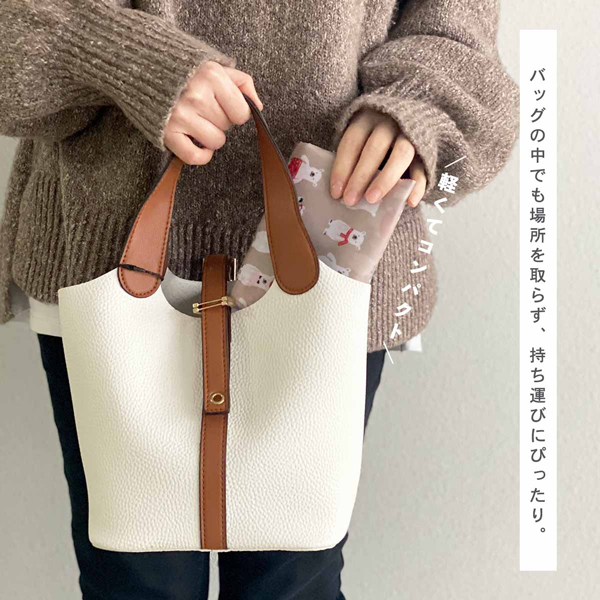 - シロクマとフレンチブルが可愛いのでプレゼント用として購入しました。たたむとポケットサイズになるので便利だと思います。