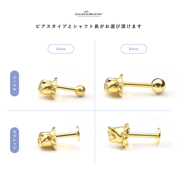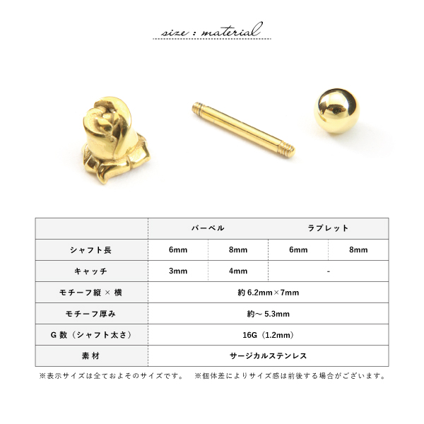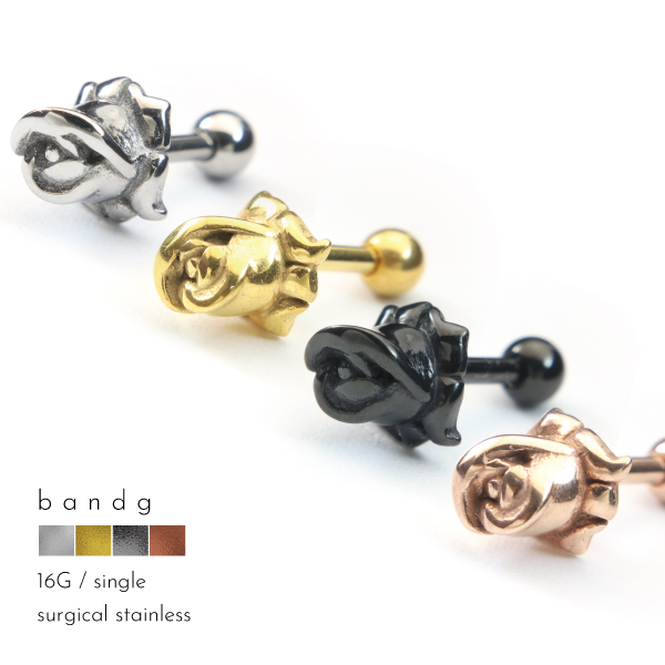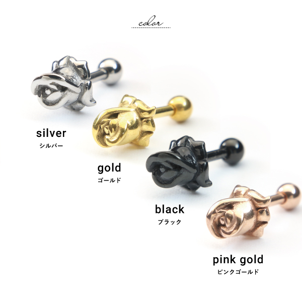 バーベル ラブレット ステンレス サージカルステンレス 医療用ステンレス 316L 金属アレルギー アレルギーフリー ボディピアス 16G 薔薇 ばら バラ ローズ 花 フラワー ワンポイント 片耳用 メンズ レディース モチーフ ゴシック パンク