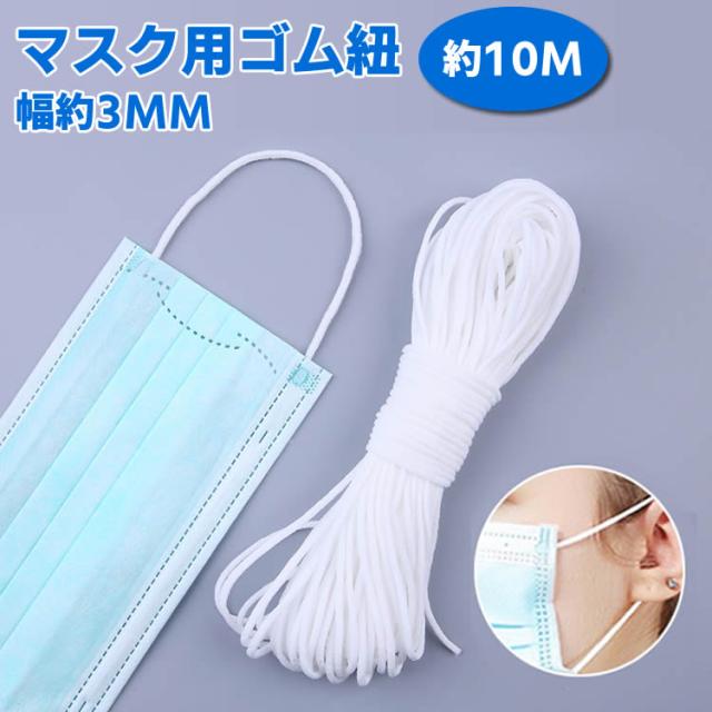 マスク用 ゴム紐 約3MM×10M マスク ゴム ひも ふんわりやわらかタイプ マスク ゴム紐 痛くない 平 マスク 手芸 手作り マスク ハンドメイド 補助小道具 ホワイト