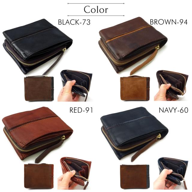 PR:二つ折り財布 ハーフウォレット ワックスレザー 袋縫い L字ファスナー バイカラー ツートン バギーポート アンティーク ビンテージ ヴィンテージ 経年変化 BAGGYPORT バギーポート メンズ レディース ユニセックス プレゼント ギフト クリスマス