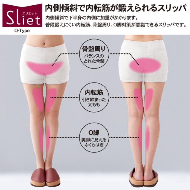 普段鍛えにくい内転筋、骨盤周り、O脚対策が意識できるスリッパです。