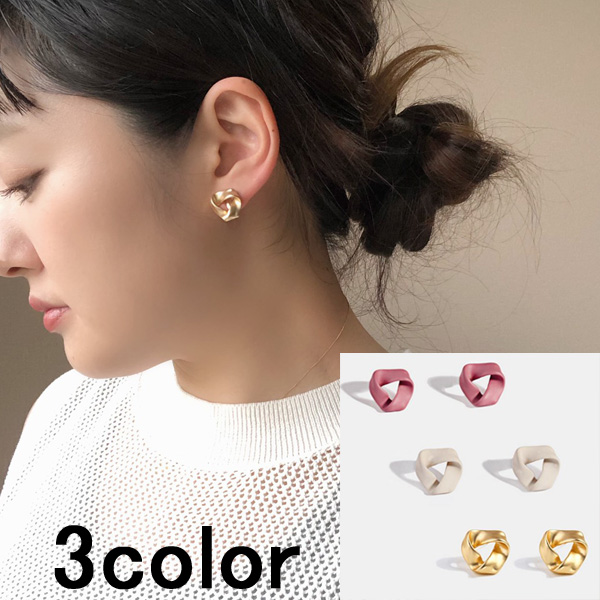 ねじり トライアングル ピアス イヤリング ノンホールピアス レディース 女性 カジュアル フォーマル 結婚式 二次会 パーティ 上品オフィス シンプル ゴールド SV925 つや消し マット ホワイト ピンク 春 夏 韓国 個性的 プチプラ 人気 キレイめ 大人