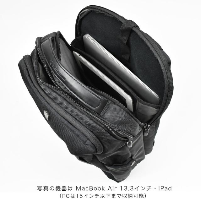 本シリーズで唯一メインルームが全面に開く構造で、1泊〜2泊程度の出張や旅行にも対応できるバッグです。