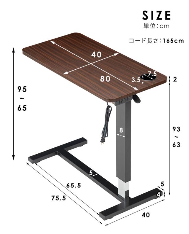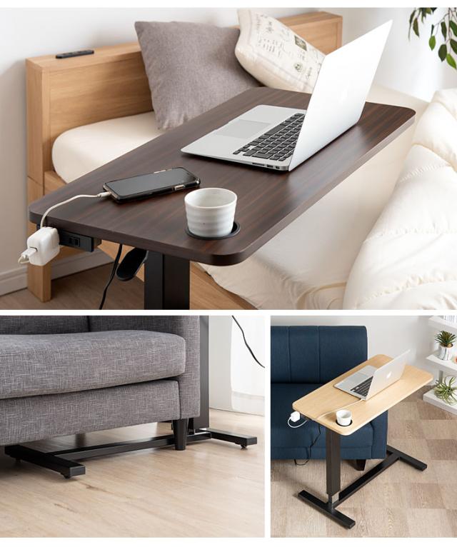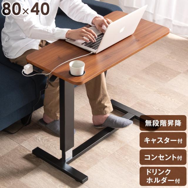 テーブル 昇降式 コンセント付 幅80 サイドテーブル 昇降式 ガス圧 キャスター式 レバー式 無段階 高さ調節 昇降 ベッドサイドテーブル テーブル 昇降テーブル 昇降式デスク 介護ベッドテーブル 机 ソファテーブル おしゃれ