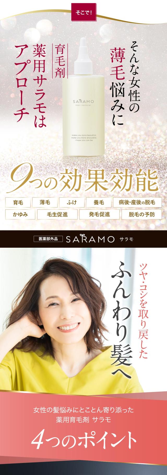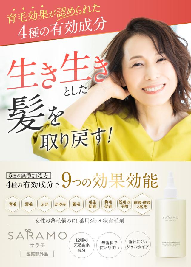 【期間限定!680円OFF】 育毛剤 医薬部外品 女性 薄毛 薬用 サラモ 無添加 女性用育毛剤 養毛剤 発毛促進 抜け毛 産後 ダメージ ケア ヘア 生え際 分け目 脱毛 予防 50代 60代 40代 100g