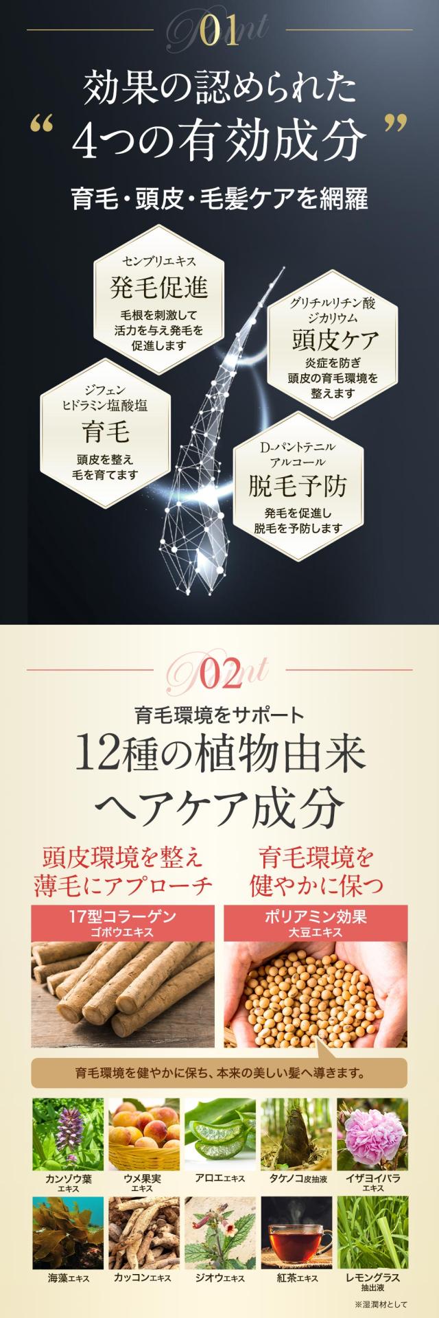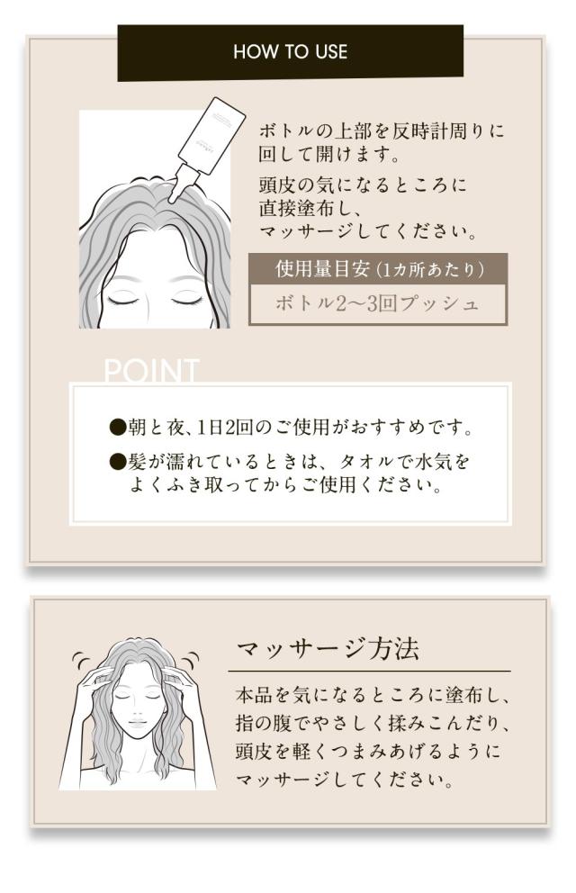 育毛・頭皮ケア・毛髪ケアができる育毛剤です。