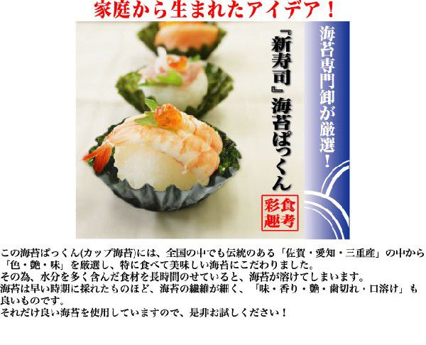 新しい海苔の提案です!1袋に24カップ(1カップ:底4cm×高さ2・5cm)入っています。