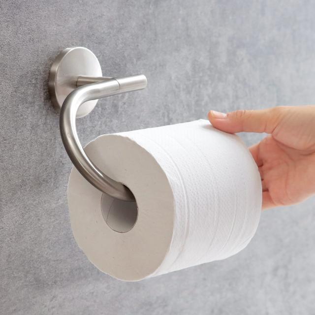 大判巻きのトイレットペーパーにも対応しています。またロールのセットもサイドからスッとスライドするだけの簡単セットです。