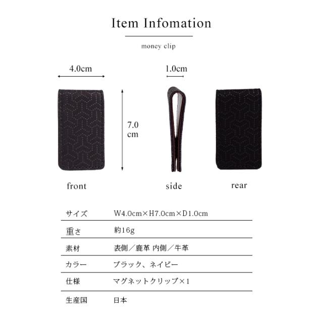 マネークリップ 札ばさみ メンズ 紳士 シンプル 小物 本革 鹿革 日本製 印伝 伝統工芸 和風 和柄 毘沙門 古都印伝