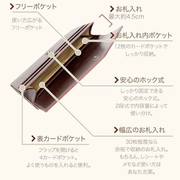 - 理想的な外付けがま口長財布です。