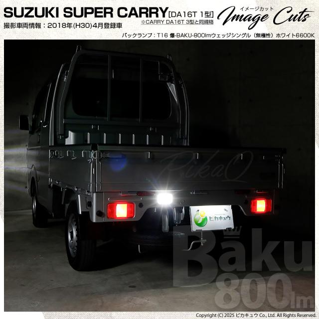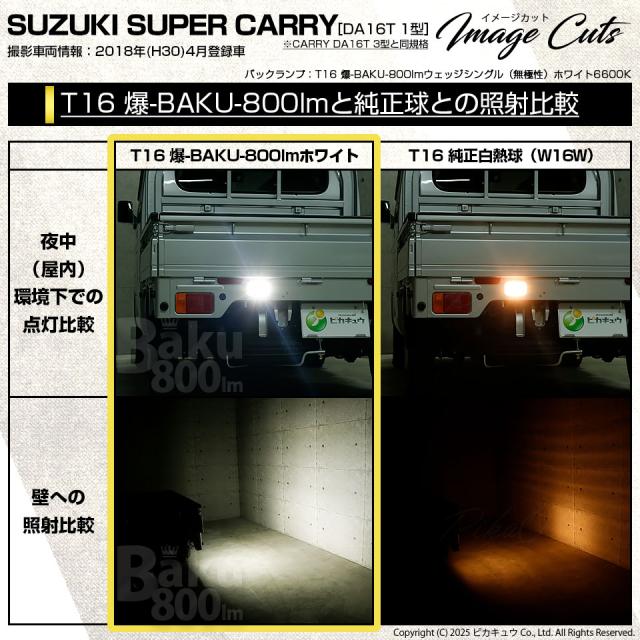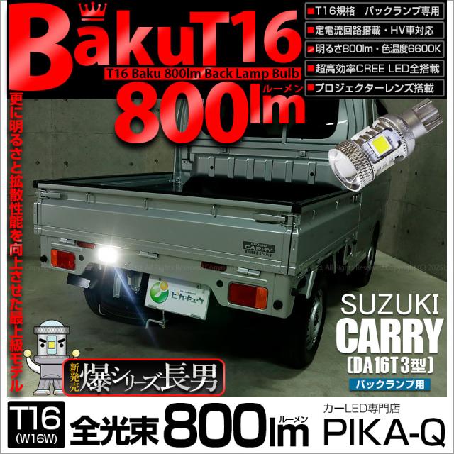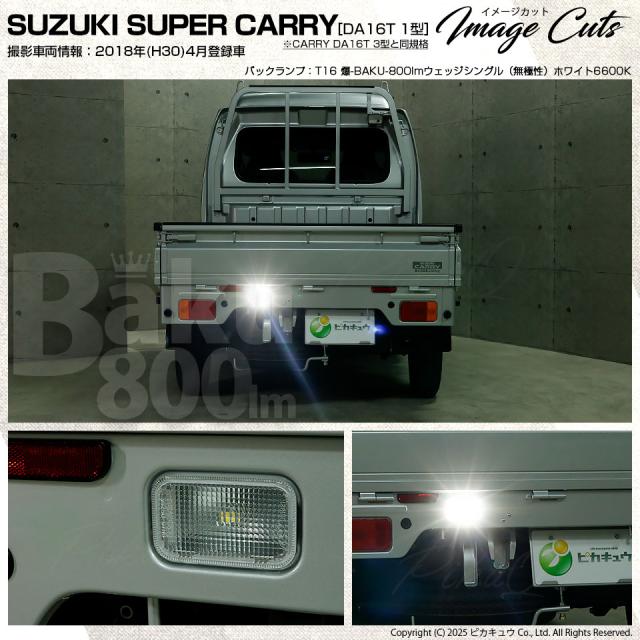 スズキ キャリイ (DA16T 3型) 対応 LED バックランプ T16 爆-BAKU-800lm ホワイト 6600K 1個 11-D-5