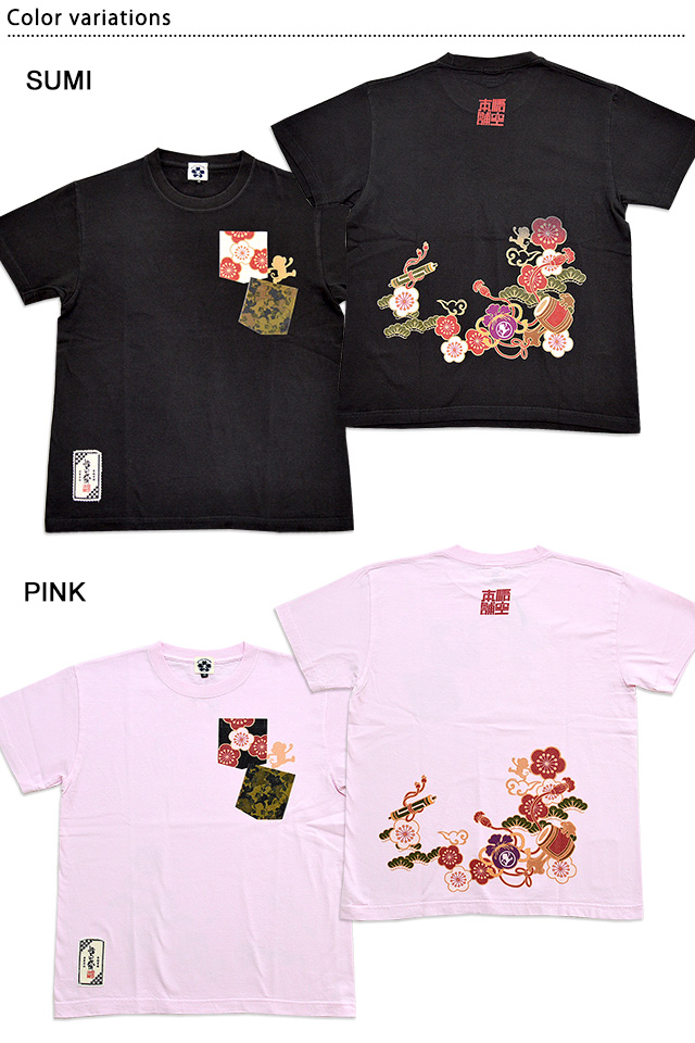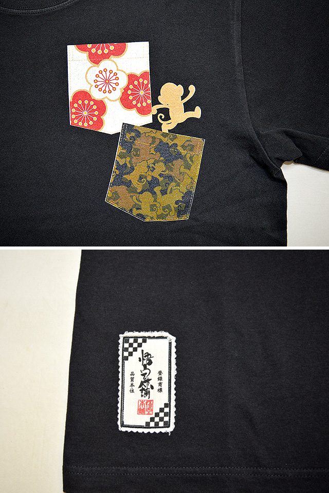 悟空2連フェイクポケット半袖Tシャツ 悟空本舗 GST-1115 ゴクー 和柄 和風 お猿さん 打ち出の小槌 松竹梅