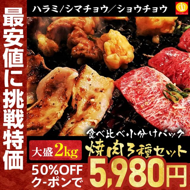半額クーポンで★5,980円!! 焼肉 焼肉セット 特盛2kgセット タレ漬け ハラミ ホルモン ハラミ1kg シマチョウ500g ショウチョウ500g 食べ比べセット BBQ バーベキュー やきにく ホルモン焼き 牛肉 取り寄せ 肉