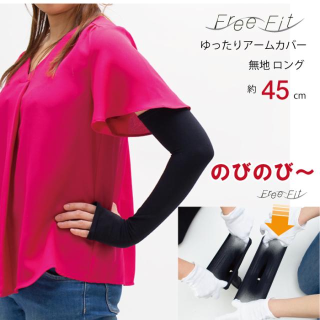 3/13〜3/19セール 45cm丈 レディース アームカバー ゆったりのびのび 冷感アームカバー(無地)FreeFit フリーフィット 接触冷感加工 親指立体縫製 紫外線対策 UVカット 大きいサイズ メール便2点まで LegStyle