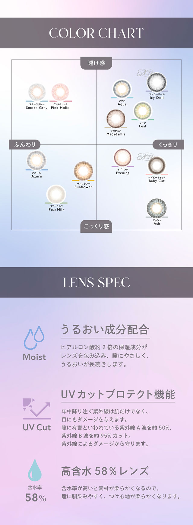 【14.1mm / 13.0mm】ペアーミルク,スモークグレー,ピンクホリック