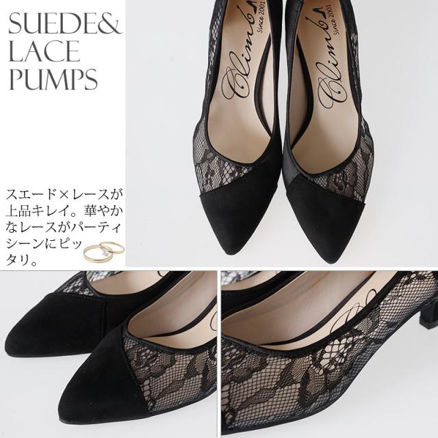 スエード&レースパンプス【s078】20代・30代・40代・50代パーティーシューズ・痛くないパンプス・ローヒール・太ヒール・ピンヒール・ヒール・レース・ラメ・デザインヒール・フォーマル・大きいサイズなど・即日発送・送料無料・結婚式・婚活・披露宴・顔合わせ・二次会・同窓会・お呼ばれ・食事会・謝恩会・親族・七五三・お宮参り・冠婚葬祭・弔事・女子会・デート・入学式・卒業式・入園式・卒園式・ママ・マタニティー・セレモニー・セレブ・パーティー