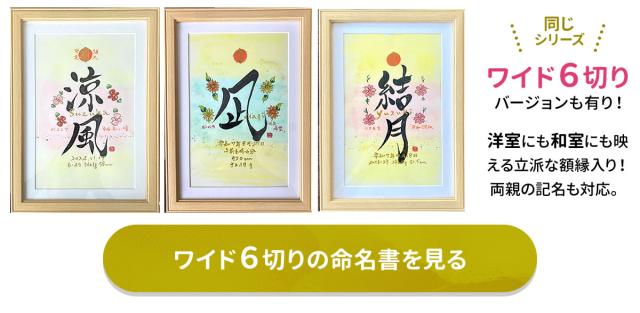 お名前に366日の誕生花と花言葉に願いを込めて一生の大事な記念を一枚の書にして残します。