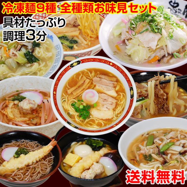 ふみこ農園 冷凍 送料無料 具材付き冷凍麺9食セット 全種類お味見セット! 調理時間たった3分!簡単 便利 具材付 美味しい 冷凍うどん 冷凍ラーメン (全て麺 スープ 具材付) 鍋焼きうどん 和歌山ラーメン 天そば 忠次郎 お子様のランチ 在宅応援! sum