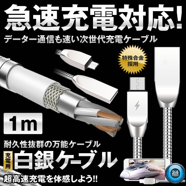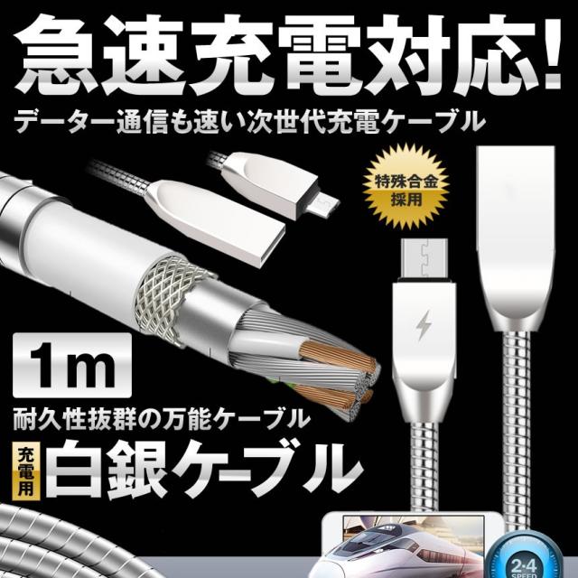 白銀充電ケーブル 急速 充電 スマホ 1m データー通信 type-c USB 長寿命 携帯 旅行 HAKUJYUDEN