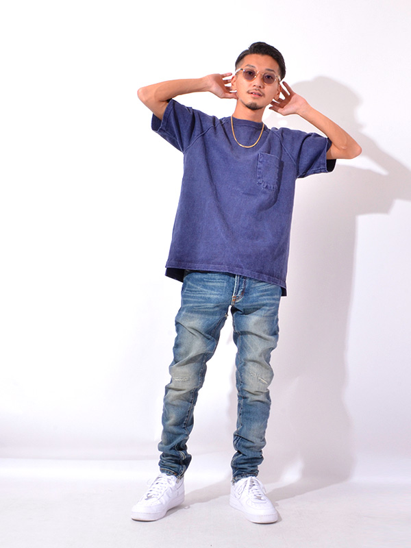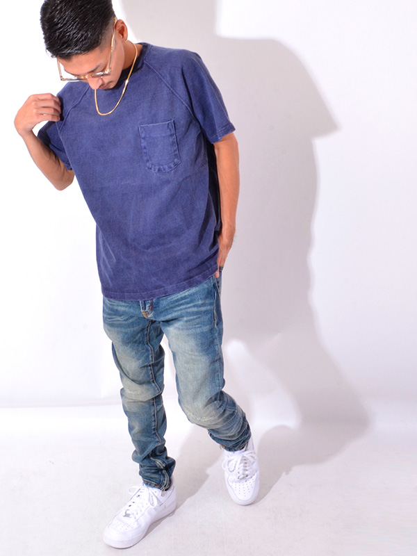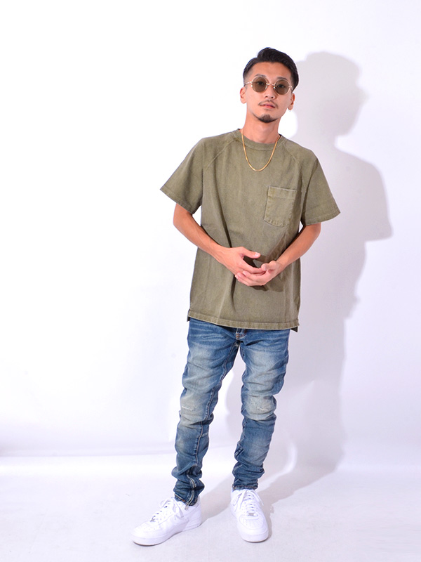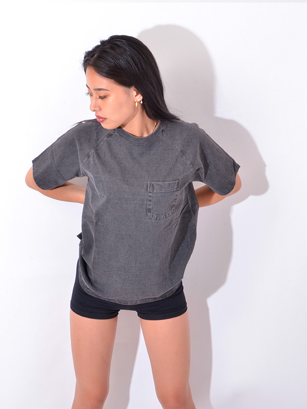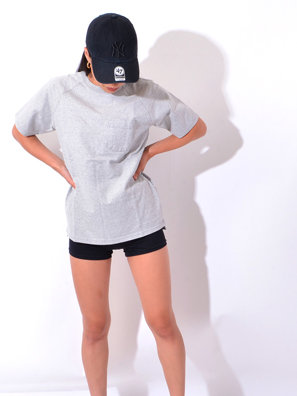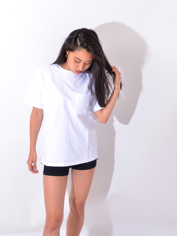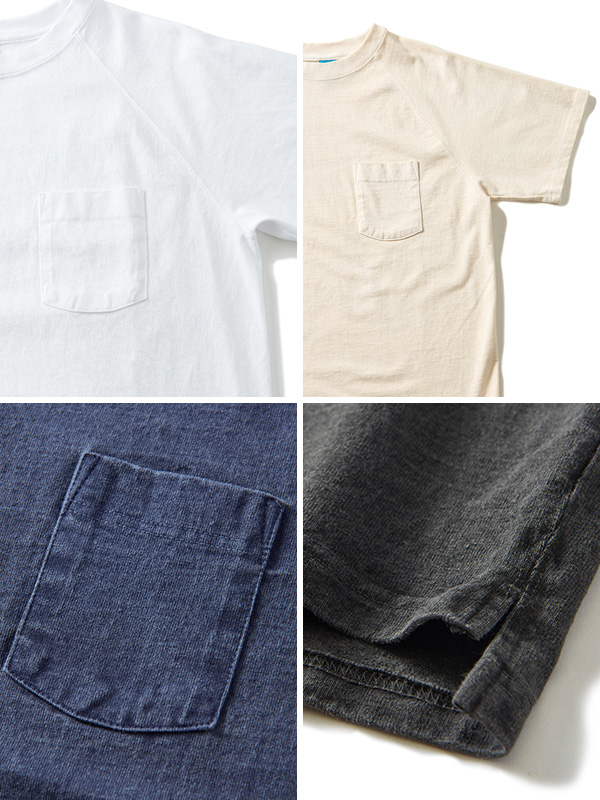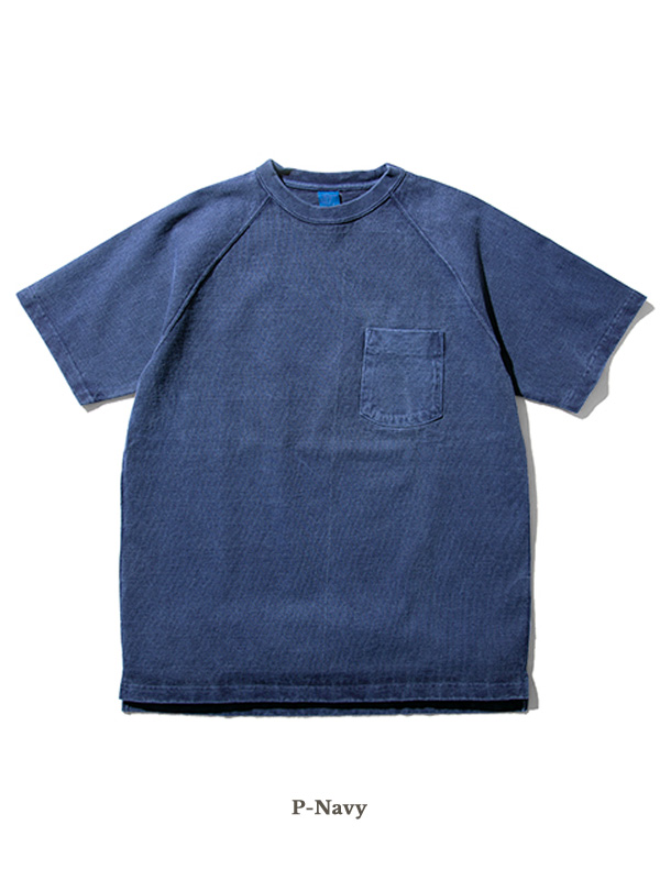 Good On HEAVY RAGLAN SS POCKET TEE グッドオン ヘビー ラグラン 半袖 ポケットTシャツ 着応えのあるヘビーオンスのポケット付きラグランTシャツ。 ブランドの中でも最もリピート購入率の高いアイテムで、一度着ると病み付きになる着心地の良さとシンプルかつ無骨な表情が特徴。 まるで薄手のスウェットのように存在感のあるTシャツ生地は、Good On定番のTシャツ生地(5.5オンス)より更に重厚な9オンス。 ほど良い厚みがあるボディは良質なアメリカ綿の着心地を存分に味わうことができます。 その重厚な生地を支える強固な縫製、厚みやゴワつきが気にならず動きやすいラグランスリーブ、 裾のサイドベンツ+ロングテールはデザインのワンポイントにもなっています。 後ろの裾が長くなっていて、両サイドにはカッティングを入れているので、 着用した際に裾が邪魔にならず、全体がもたつきません。 すっきりとしたコンパクトなシルエットで、インナー使いや重ね着での使用よりも、 より一枚での着用に適したTシャツとなっています。 反応染めカラーは落ち着いた雰囲気のきれいな発色が特徴で、 ベーシックかつシンプルな仕上がりで着回しやすく上品な印象。 Pigment Dye(顔料染め)カラーは独特な濃淡のある色合いで、 風合い感と経年変化による色あせを楽しむことができます。 ヘビーオンスの生地は定番の生地以上に顔料染めによる濃淡が際立ち、 味のある色褪せを楽しむことができます。 ※ホワイト、メタルグレーは製品染めではありません。 メタルグレーは複数色の先染め糸を絶妙に混ぜ合わせて編み立てる事で霜降りの杢グレーに仕上げた生地を使用しています。両色とも製品後に洗いと乾燥をかけて他の色と同様に縮ませています。 ※※製品染め商品の特性上、一点一点染め上がりのお色やサイズに若干の誤差がございますので予めご了承ください。 また、独特のユーズド感のある表情、多少のゆがみや擦れ、縫い目部分のしわ、 編み地の筋やムラなどは製品の特徴です。素材の持つ不均一感やラフ感をお楽しみください。 ※ 製品染め商品のカラー名について P- = Pigment Dye(顔料染め) P-なし = Reactive Dye(反応染め)他 | |||||||||||||||||||||||||