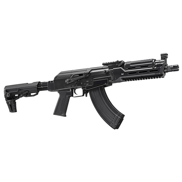 AK47ベースのモダナイズド・カスタムモデル。AK47に東京マルイ・オリジナルの現代化カスタムを施した、次世代電動ガン「AKストーム」が登場!取り回しやすいショートバレル化や、状況に合わせて形状を選択できるストック、マガジンチェンジがしやすいマグウェル、バックアップサイト付きのマウントベースなど、操作性をアップするカスタムを各所に採用しています。《主な特徴》シュート&リコイルエンジン搭載:トリガーを引くことで発射と同時にボルトが作動し、さらに本体内部で発生した強烈な反動が全身に伝わります。また、マガジンが空になると発射作動がストップするオートストップシステムを採用。作動や操作性のリアリティを追求したモデルとなっています。ボルトリリース機構:ボルトハンドルを引いてオートストップを解除する、ボルトリリース機構を搭載。リアルな操作手順が楽しめます。金属パーツを採用:ロアーレシーバーをはじめ、各部のパーツにダイカストやプレススチールを用いて目にうつる重厚感と手にした時の重量感を演出し、高い剛性も実現しています。ロアーレシーバーには、デフリックコートを施すことでスチール黒染め処理の質感を再現しました。M-LOKレイルシステム:アンダーレイルを備えたハンドガードの両側面には、最新のレイルシステム「M-LOK(エム-ロック)」を採用。必要な部分にだけレイルを増設可能なハンドガードはスリムで扱いやすく、肉抜きによる軽量化もされています。幅20mm(ピカティニー規格)のM-LOKレイルは3スロット、5スロット、7スロットの3種類が各1枚付属。付属の六角レンチで簡単に脱着可能です。様々な付属パーツ:2種類のM-LOKカバーや、ハンドガードを握る手を支える2種類のハンドストップ、別売の「マイクロプロサイト」をより低い位置で取り付け可能な専用マウントが付属します。各種マズルオプションに対応:銃口のフラッシュハイダーを取り外せば、サイレンサーなど14mm逆ネジ仕様のマズルオプションを取り付けることができます。スチールプレス製マガジン:装弾数90発、ホンモノ同様のスチールプレス製アウターケースを採用したマガジンが付属。内蔵式フォロワーストッパー搭載で、マガジンにBB弾を入れずに発射作動だけを楽しむことも可能です。※AK74用マガジンとはマガジンの互換性がありません。マガジンアダプター付属:本体にアダプターを装着することで、電動ガン スタンダードタイプAK用マガジンが使用可能になります。※アダプター装着時は、オートストップシステムとボルトリリース機構が作動しません。また、次世代電動ガンAK47用マガジンが使用できなくなります。