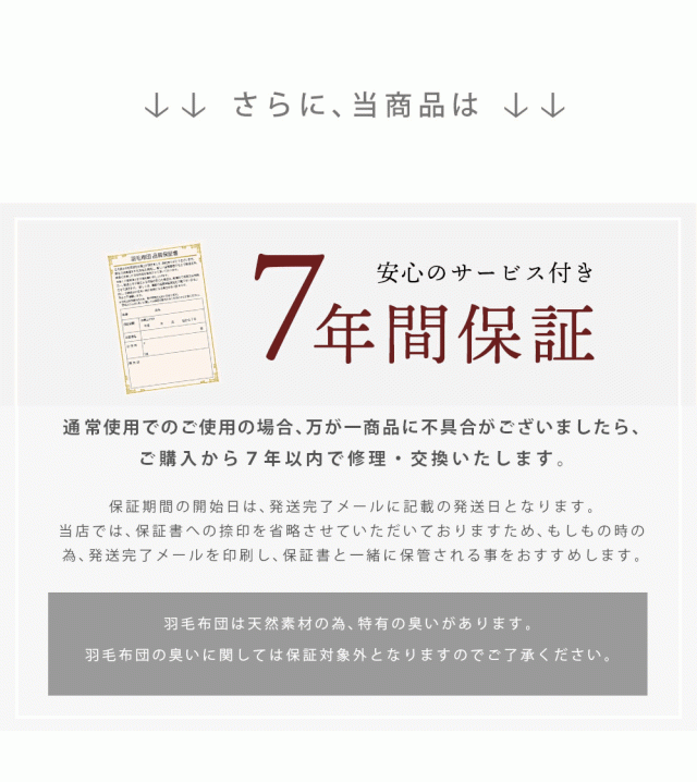 あの人気シリーズから春夏にぴったりな薄めの羽毛布団が登場★安心の7年保証付き♪