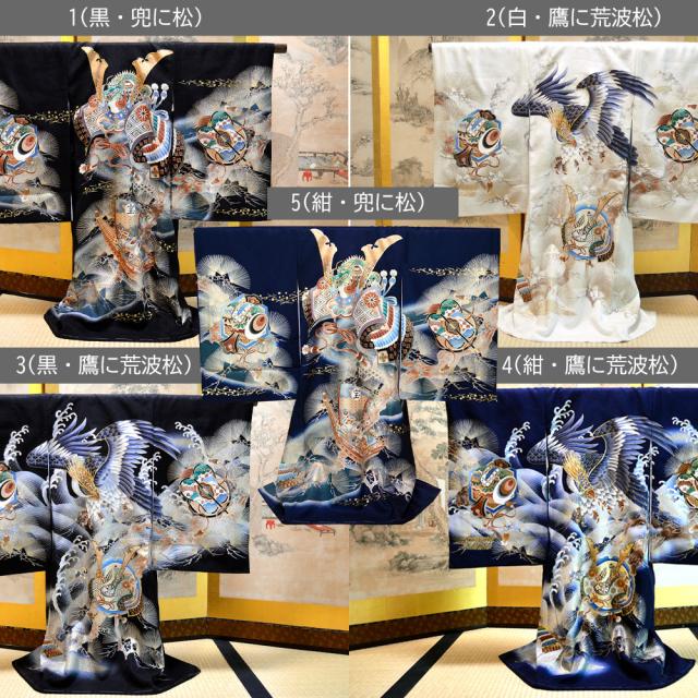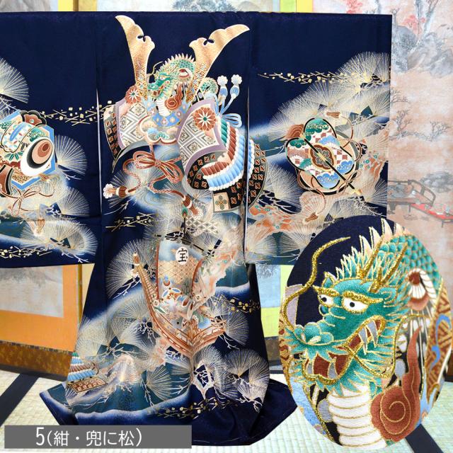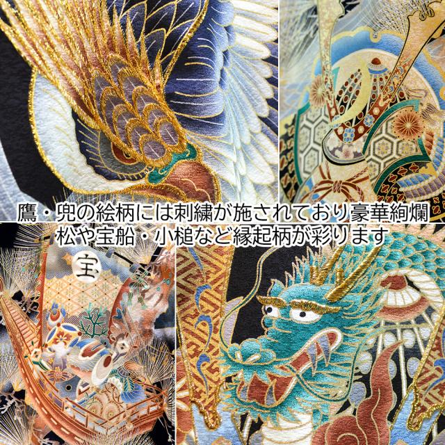 着物に描かれた兜の豪華な飾りは