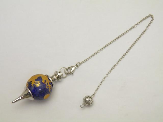 天然石 龍 ラピスラズリ (金色入り)手彫り ペンデュラム 金具銀カラー 1個売り