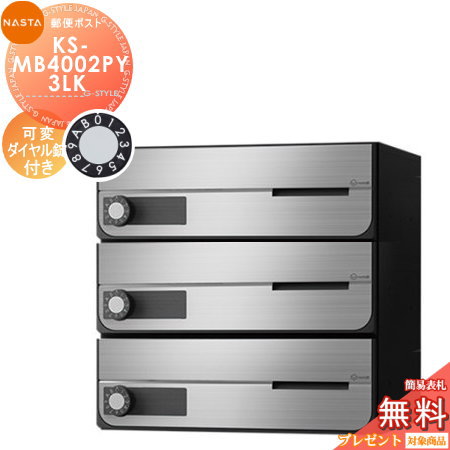 郵便ポスト 郵便受け キョーワナスタ NASTA 集合住宅 【KS-MB4002PY-3LK 可変ダイヤル錠 横開き 3戸用】 ポスト 大型郵便物対応 前入前出 屋内タイプ D-ALL ディーオール