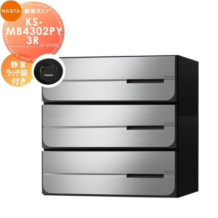 郵便ポスト 郵便受け キョーワナスタ NASTA 集合住宅 【KS-MB4302PY-3R 静音ラッチ錠 横開き 3戸用】 ポスト 大型郵便物対応 前入後出 防滴タイプ D-ALL ディーオール