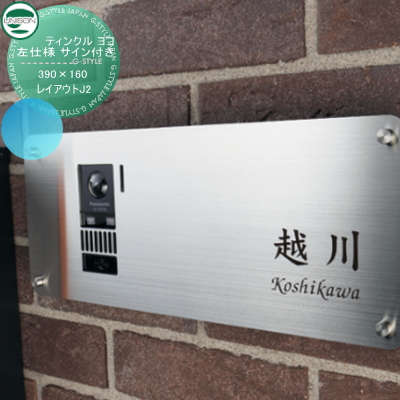 インターホンカバー 表札 ユニソン 【ティンクル ヨコ 左仕様 サイン付き サイズ:390×160 レイアウトJ2】 インターホン 表札 ネームプレート サイン ステンレス