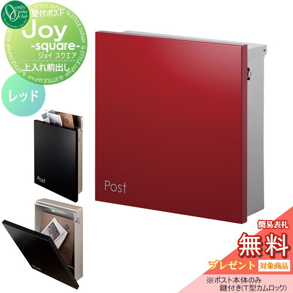 郵便ポスト オンリーワンクラブ ポスト 【ジョイ スクエア レッド】 壁付けポスト 壁掛けポスト 郵便ポスト 郵便受け