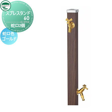立水栓 水栓柱 ユニソン スプレスタンド60 左右仕様 蛇口2個セット 木目調 蛇口ゴールド 本体 ウォールナット 2口水栓柱 散水ホース対応 おしゃれ かわいい 蛇口 ガーデニング 庭まわり 屋外 水道 水廻り UNISON