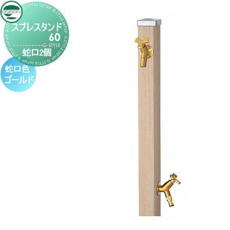 立水栓 水栓柱 ユニソン スプレスタンド60 左右仕様 蛇口2個セット 木目調 蛇口ゴールド 本体 シャインチーク 2口水栓柱 散水ホース対応 おしゃれ かわいい 蛇口 ガーデニング 庭まわり 屋外 水道 水廻り UNISON