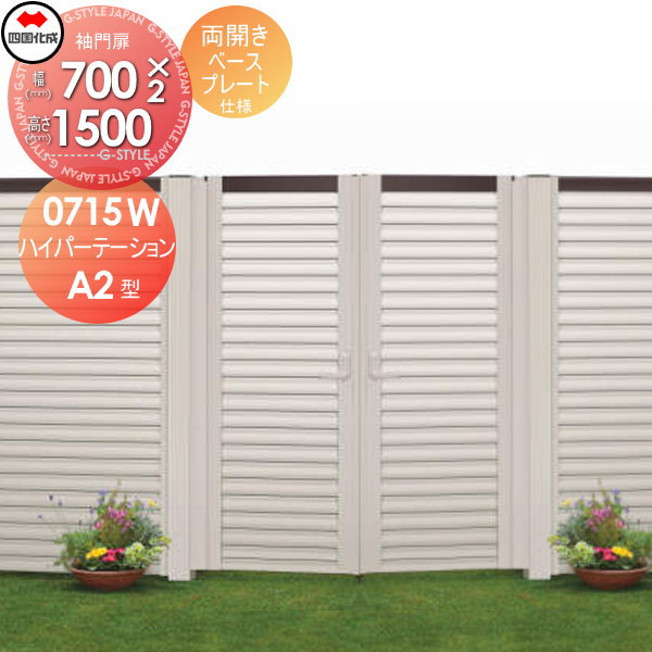 アルミフェンス 袖門扉 四国化成 【ハイパーテーションA2型 袖門扉 両開き ベースプレート仕様 H1500】 HPSA2-B0715WSN ガーデン DIY 塀 壁 囲い エクステリア