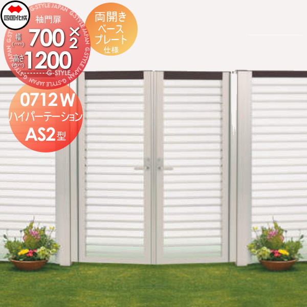 アルミフェンス 袖門扉 四国化成 【ハイパーテーションAS2型 袖門扉 両開き ベースプレート仕様 H1200】 HPSAS2-B0712WSN ガーデン DIY 塀 壁 囲い エクステリア