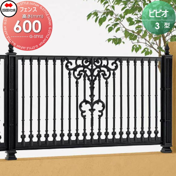 鋳物フェンス 四国化成 【ビビオフェンス 3型 フェンス本体 H600】 VOF3-0610BK ガーデン DIY 塀 壁 囲い エクステリア